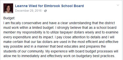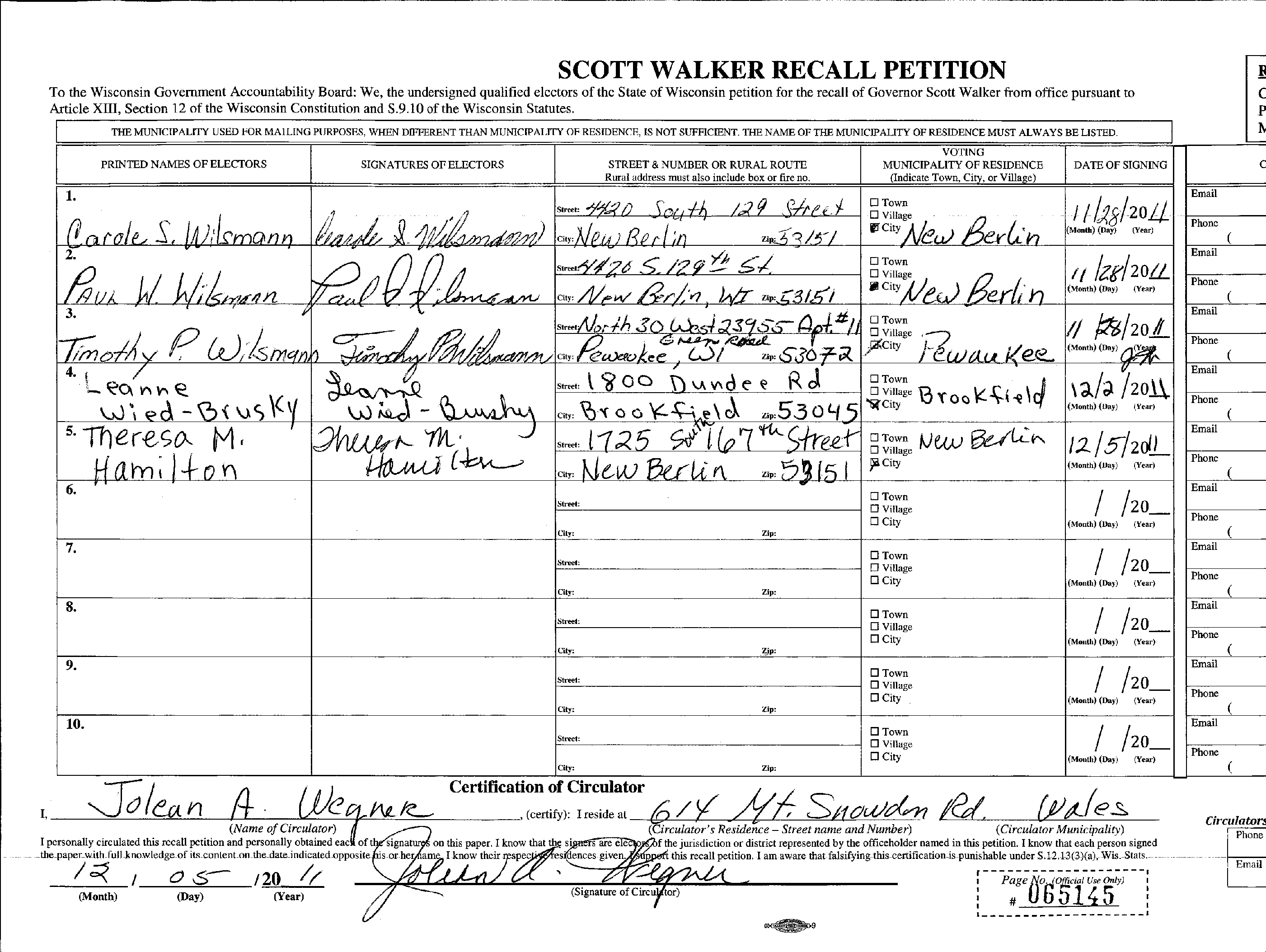Leanne Wied, candidate for School Board, signed to Recall Gov. Scott Walker.